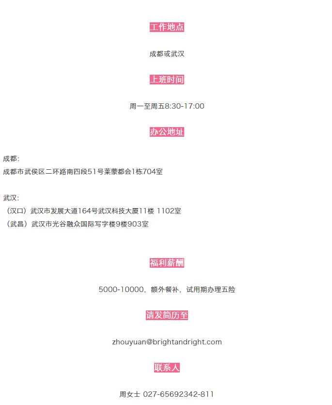 德权成都、武汉分公司招聘多个岗位啦!!