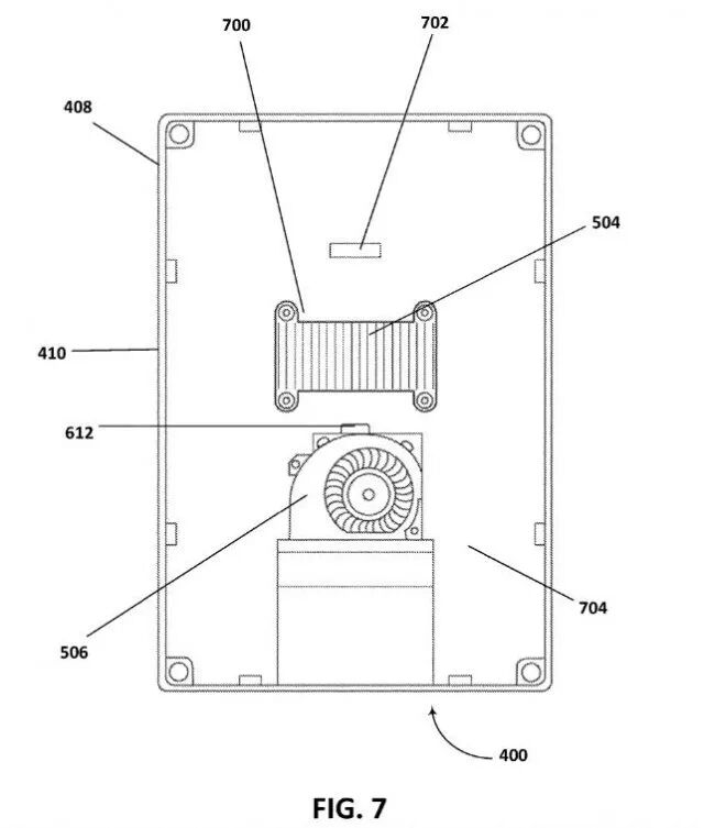 在这项专利中描述了能够连接冷却移动计算设备的散热器,例如用户将设备和该散热器连接之后能够解决设备过热问题。在专利描述中写道:" 热管理系统和相应的使用方法已经本文中有所描述。热管理系统包括散热器,通过物理接触达到降温的效果。此外该散热器还能连接配对灵活使用,根据移动计算设备的尺寸大小来搭配出不同大小的散热器。"