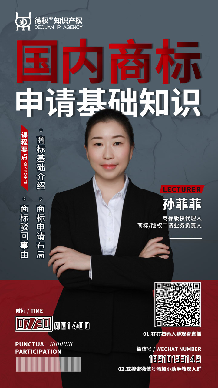 授课专家:孙菲菲,德权商标版权代理人、商标/版权申请业务负责人