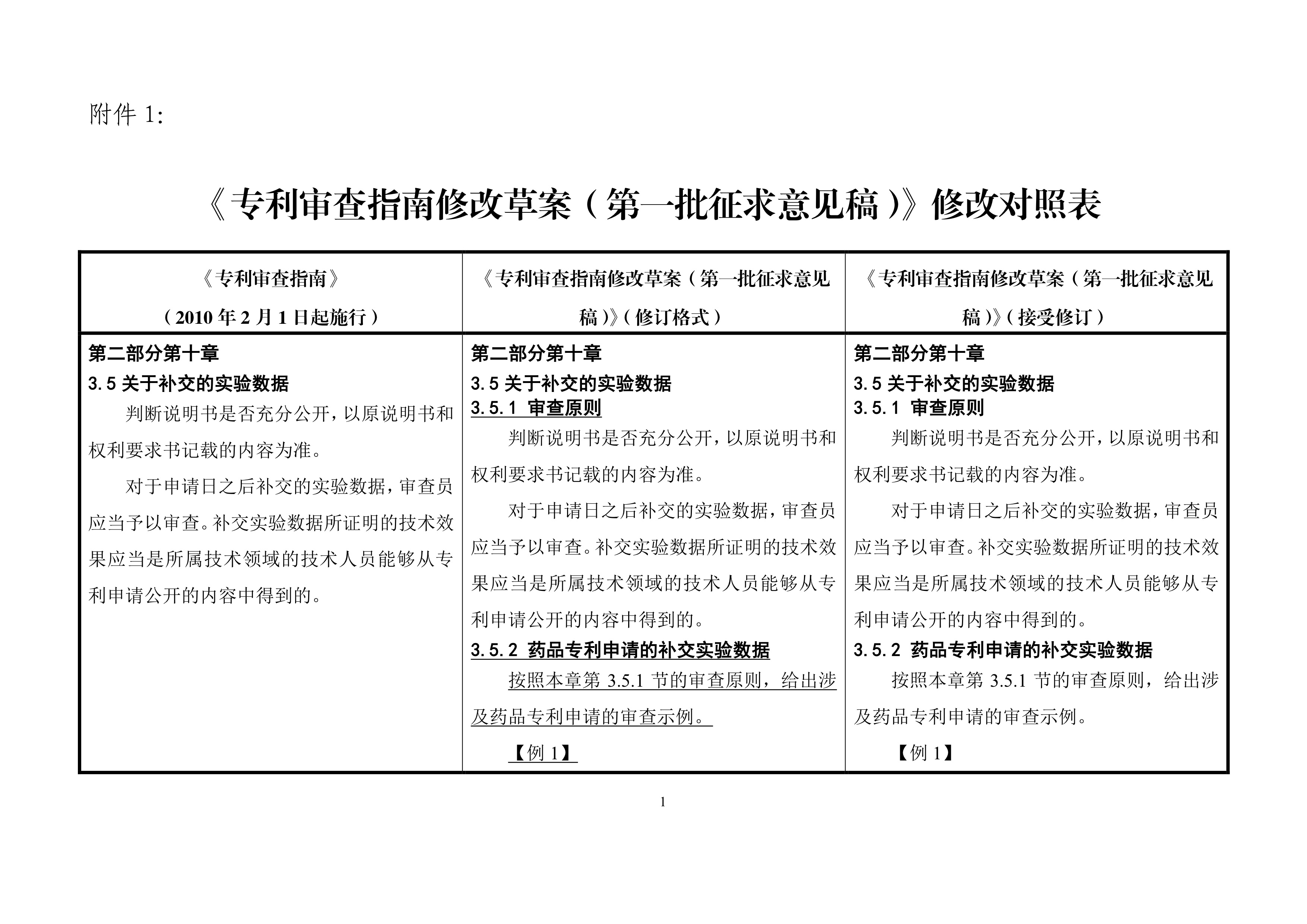 《专利审查指南修改草案(第一批征求意见稿)》修改对照表